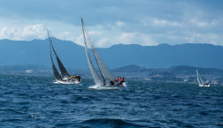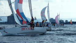 全艇ポートアプローチを開始・・・「スターボー」と叫びながらミヤコが接近する ベアしてミヤコのジャイブを待つ