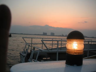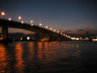 PM6:15 出航する 琵琶湖大橋の夜景が印象的