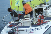 風も無く良い写真の撮れそうもないので、他艇の女性クルーをパチリ・・・ゴメン
