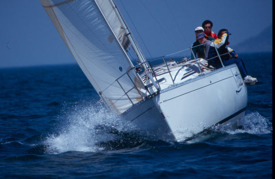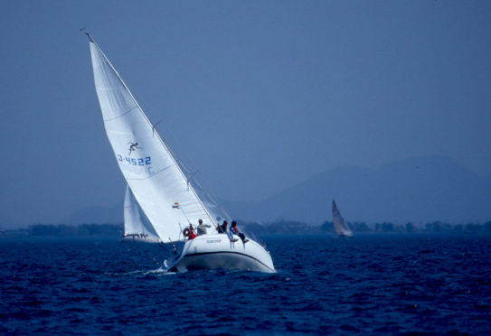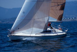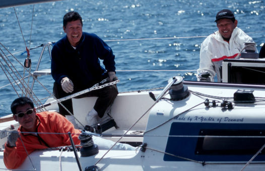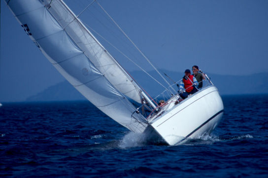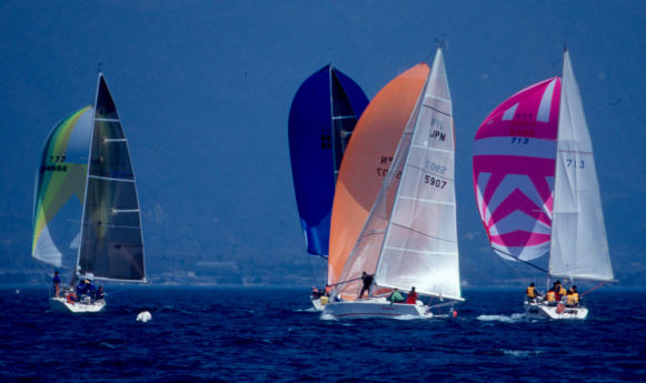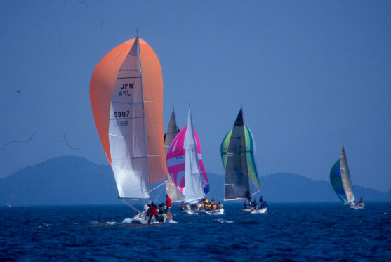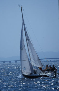 | イクチは「セイルが違います」と言ってスーと追いぬいて行く・・・当方 ダクロンのセルフタックジブ | |