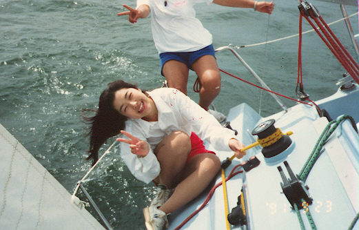 バウに立つ美女