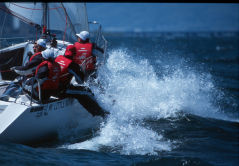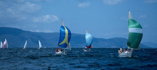 | 普通フリーの絵は、お花畑のようにスピン花が咲くのですが、スピンアップしない艇も多く、いまいち.この風でしたらVERANOもよう上げません。 | |