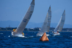 | 第5レースのスタート 1日目は朝から雨、午後京都で写真クラブの総会に出席するため、レース撮影に行くのはやめました. スタート5分前の予報だと思い、スタートの時には本部艇の随分下、スタートばっちりの写真は撮れませんでした. ゴメン |