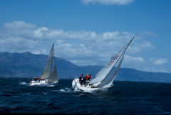 第5レースの3レグ上マール回航 上アプローチ写真も数枚だけ、何せ風が強く、波にほんろうされながらの機走ではヨットの方が早いから. 撮影ポイントにVERANOを止めて置く事が大変でした. |