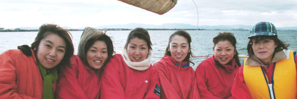 しかし、しかし、北湖に出たとたん強風大波・・・「全員ライフジャケット着用・・・」「セイルチェンジ」