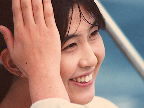 琵琶湖でクルージングを楽しむ若い女性 おそらく彼女の長い人生で 1度しかない体験だと思う